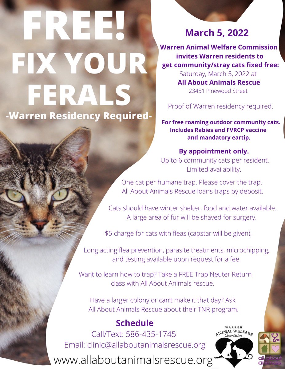 But now you know the secret. Thursday March 11 until 9 a. All About Animals Rescue is a 501c3 dedicated to No More Homeless Pets in Detroit Flint Oakland Warren Michigan providing high-quality high volume low-cost spayneuter wellness and feral and stray cat assistance.